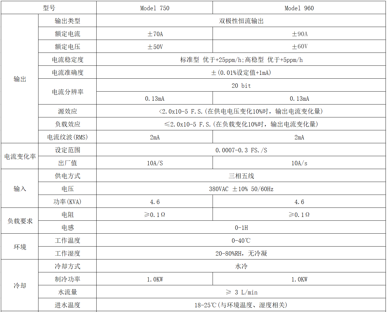• 电流变化速率可设置范围为0.0007~0.3 FS./S(F.S.为额定最大输出电流)